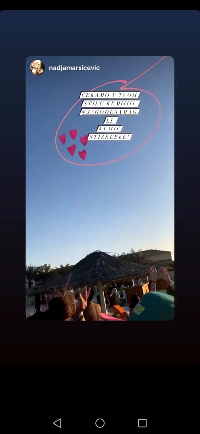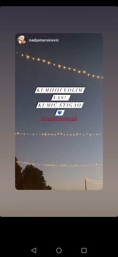 Након што се Јелисавета породила, поносна кума је поставила снимак са исте плаже. Овога пута у питању су били вечерњи сати, где је на звезданом небу написала: - Кумић, стигао.