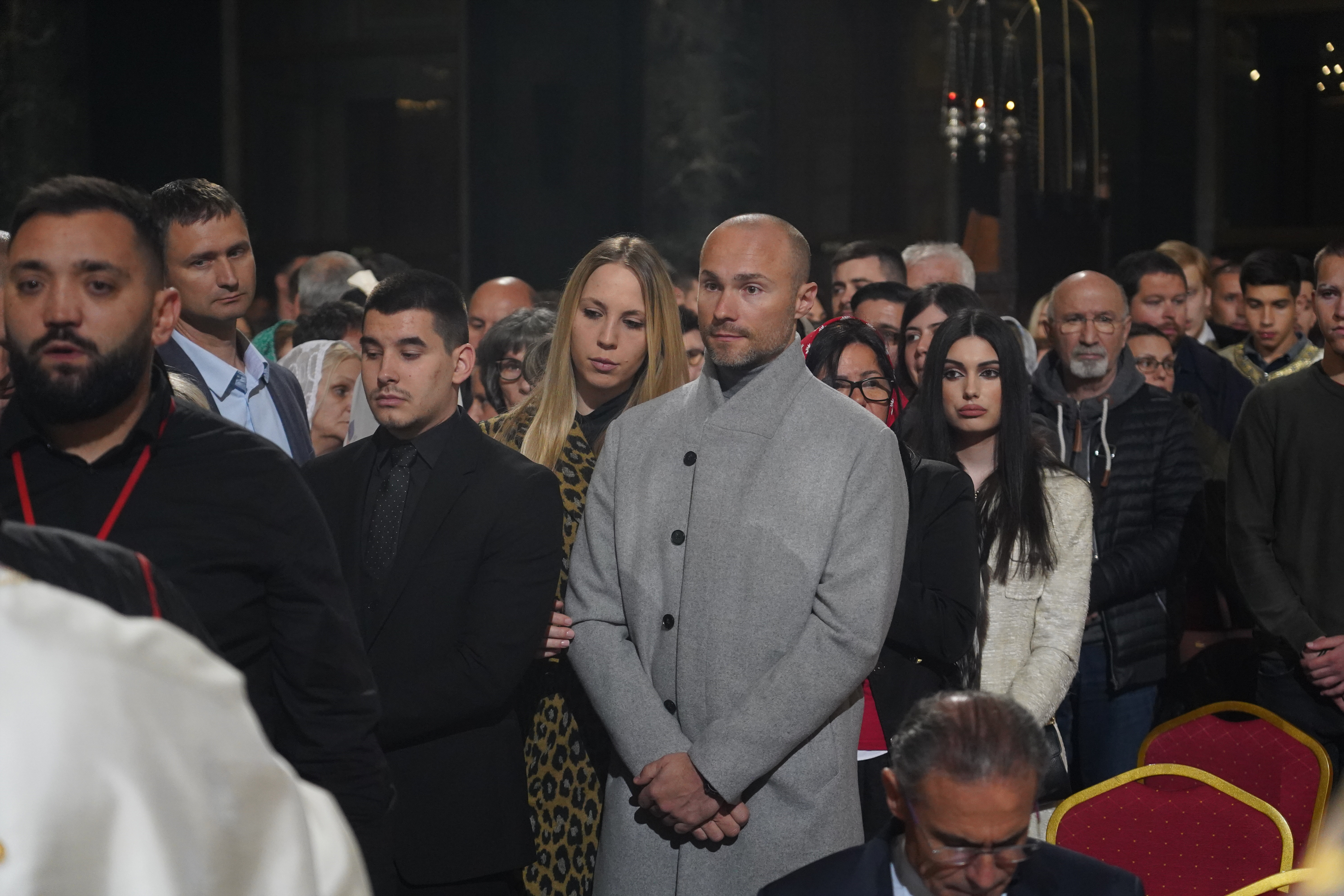Певачица Јована Типшин била је нешто мање приметна због мараме на глави, али је присуствовала празничној литургији.