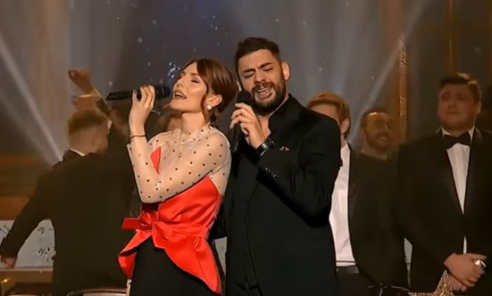 Глумачки пар, Тамара Драгичевић и Милан Марић, отпевали су у новогодишњој ноћу песму, "Поноћ".