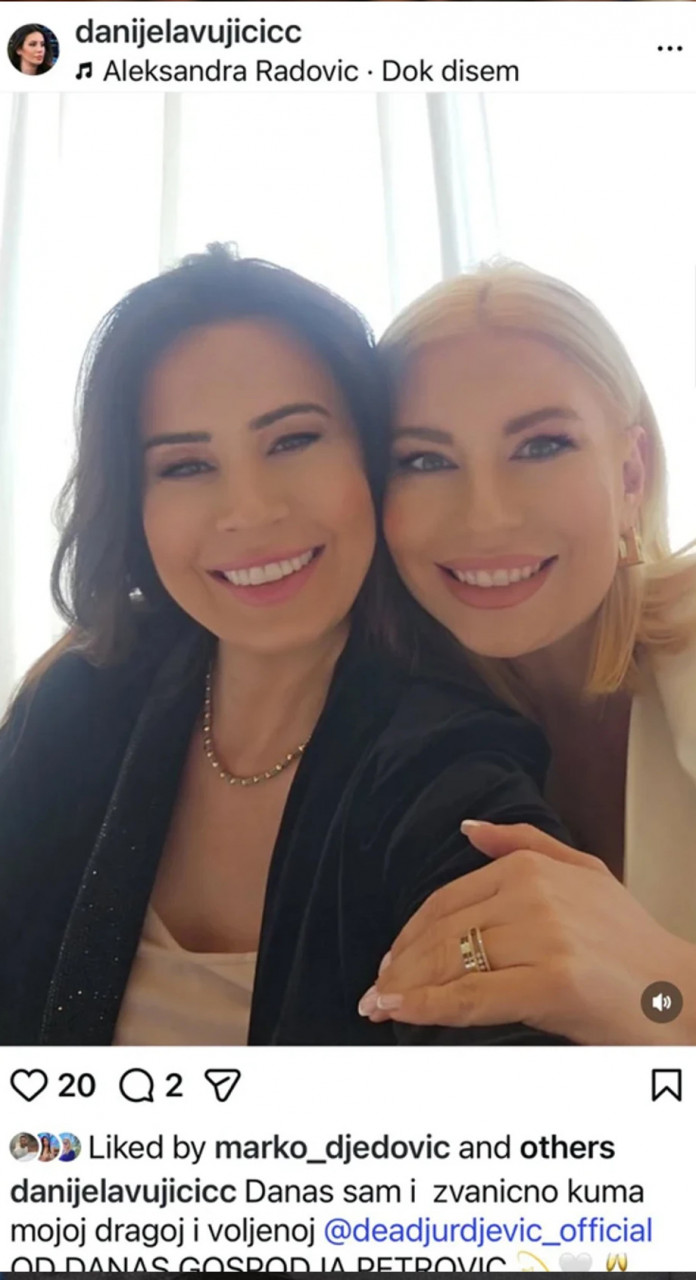 - Данас сам и званично кума мојој драгој Деи... Од данас госпођа Петровић - написала је Данијела у опису фотографије са венчања са Деом, која је у другом стању.