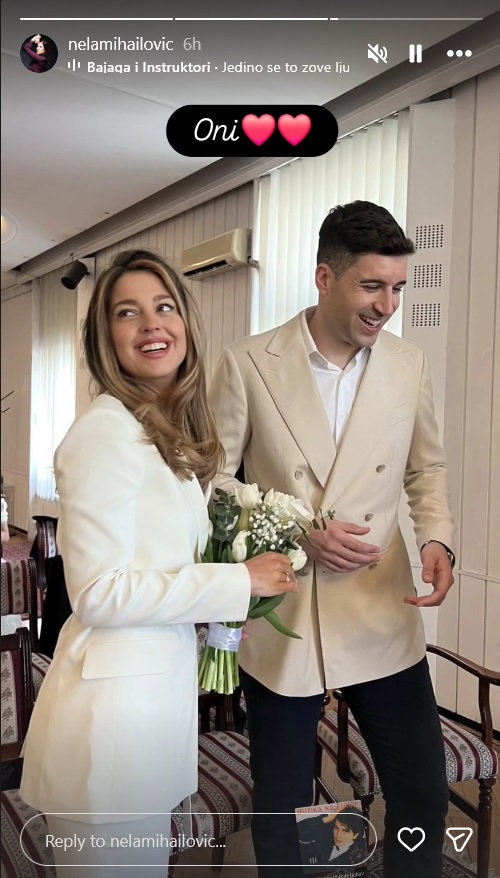 Глумица је позната по томе да приватни живот држи ван очију јавности, а вест о њеној удаји је поделила глумица Нела Михаиловић која је на свом Инстаграм профилу поделила фотографију младенаца из општине.