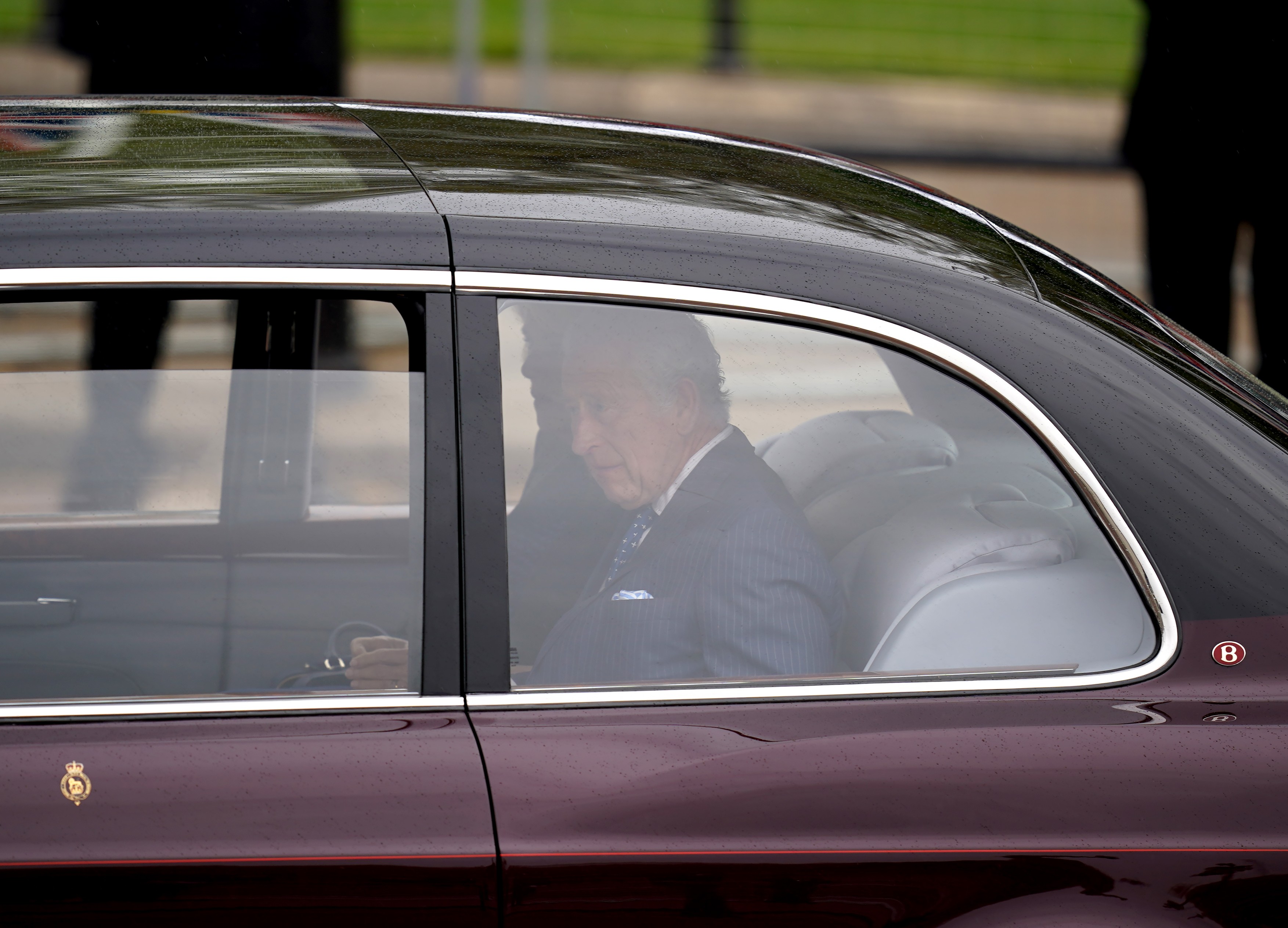 Њихова Величанства краљ и краљица, стижу на западну капију и чују се фанфаре. Управо је кренула процесија крунисања новог монарха Енгелске краља Чарлса и краљице Камиле.