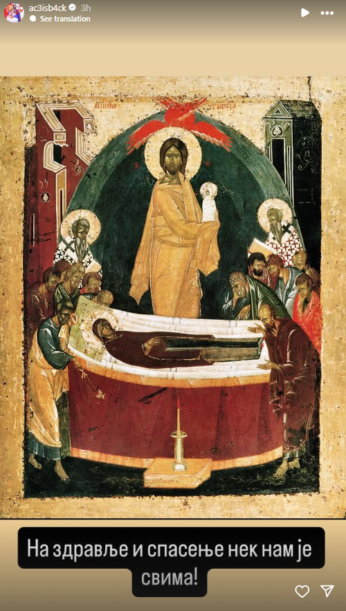 Вељко Ражнатовић је на Инстаграму честитао празник православним верницима.