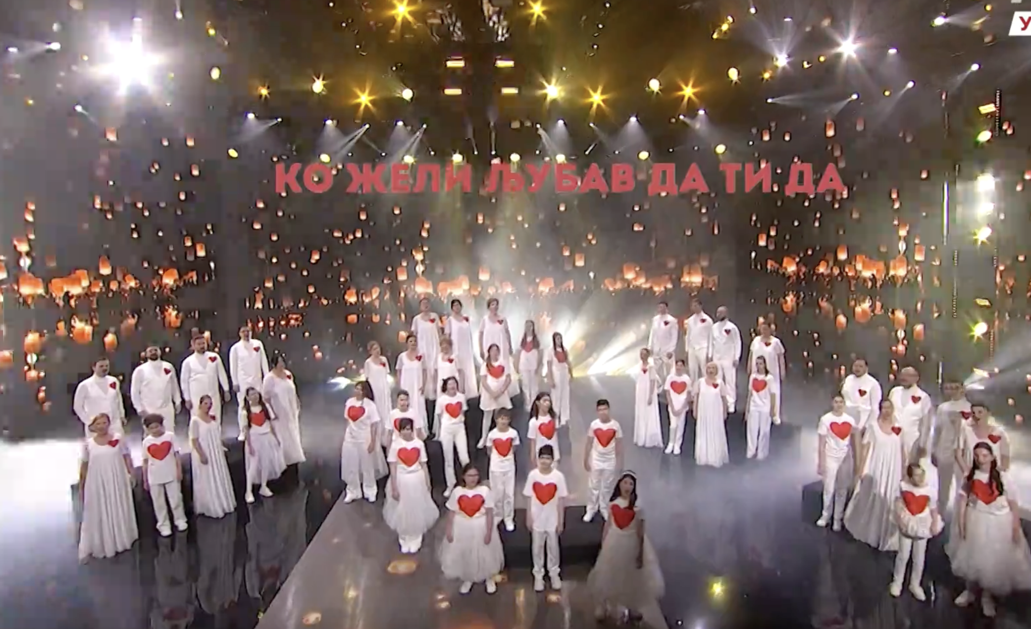 Прво полуфинално вече отворено је снимком песме ”За милион година” и дечјег хора РТС-а, након чега нас је дочекао водитељски тандем Кристина Раденковић и Драгана Косјерина елегантно одевен у дуге црне хаљине.