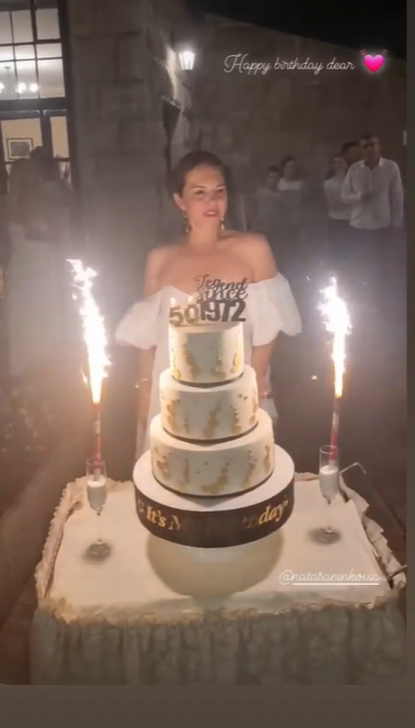 Она је на свом Инстаграмн профилу поделила део атмосфере са прославе. Сви су били веома весели и расположени, а оно што је свима запало за око је прелепа рођенданска торта коју је имала. Она је била на три спрата, беле боје, а на врху су се налазиле свећице.