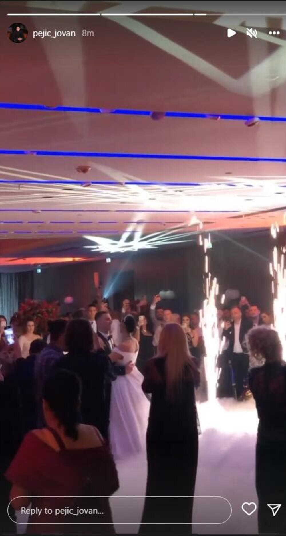 Гламурозно славље Марка Гобељића и Катарине Грујић увелико је почело у једном београдском хотелу. Младенци су весеље започели првим свадбеним плесом уз песму Лепе Брене " Ја немам други дом".