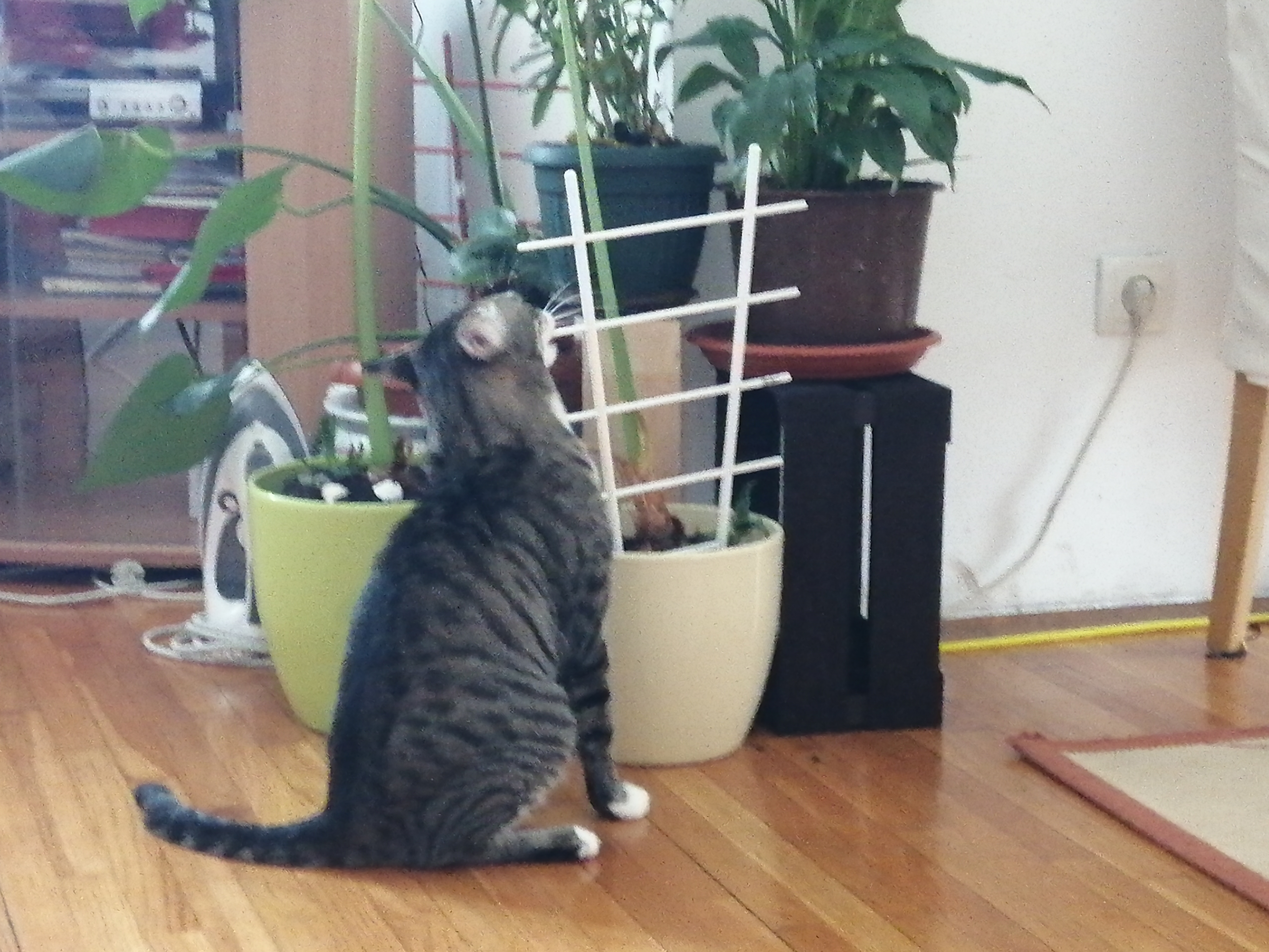 У саксијама цвећа се често налазе пластичне решетке које се користе за пузавице и остале биљке којима је потребна потпора. Ови пластични врхови изузетно привлаче маце. Једна власница мачке са Новог Београда се одлично досетила да маци Шапици у лако доступну саксију забоде ову пластичну решетку.