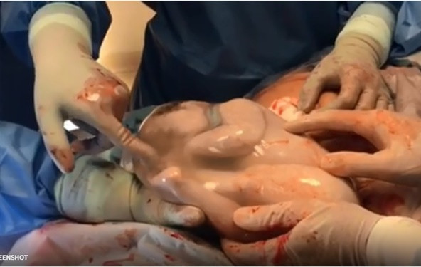 Невероватан видео бебе рођене у плодовој врећици, док је лекари буде пре доласка на свет.
