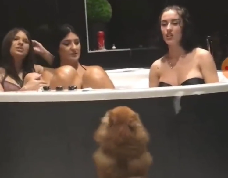 Да ситуација буде још бизарнија, одједном се појављује мали пас, који покушава да ускочи у ђакузи.