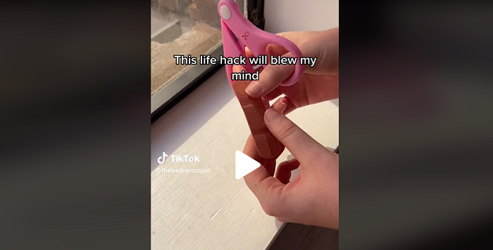 На Тиктоку се појавио снимак који показује како да на најједноставнији могући начин спречите да се то деси. Све што вам је потребно јесу маказе. Потом треба да пресечете крајеве на којима се налази лепак, са обе стране. Ставите фластер на прст, а потом наизменично залепите делове фластера: