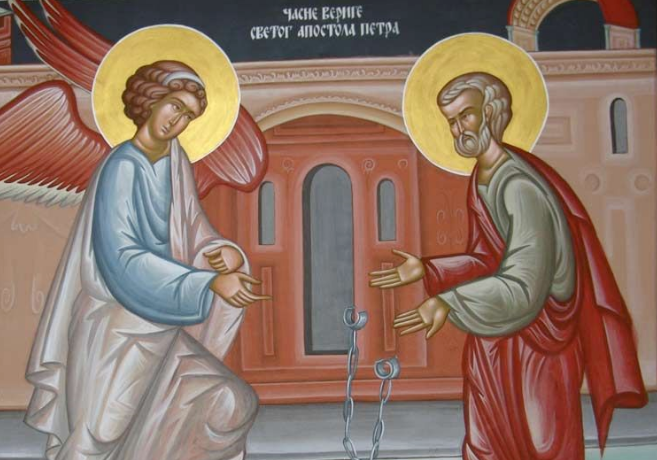 Ирод је, према предању, Павла бацио у тамницу и наредио да стоји окован између два војника и чека суђење. Међутим, ноћ пред извођење на суд, прича каже, појавио се анђео и ти окови су сами од себе спали са светитеља.