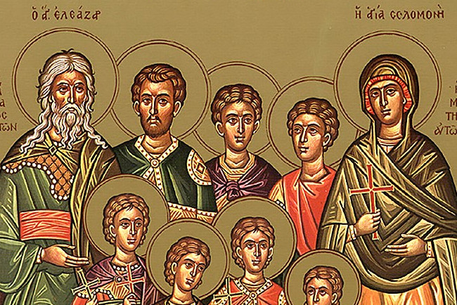 Свети мученици Макавеји и њихова мајка Соломона и учитељ Елеазар страдали 166. године п.н.е. када их је убио император Антиох XИ Епифан, који је покушао да у Јерусалиму уведе паганске обичаје. Епифан је у Јерусалимски храм поставио кип грчког паганског бога Зевса, испред ког је присиљавао Јевреје да се клањају.