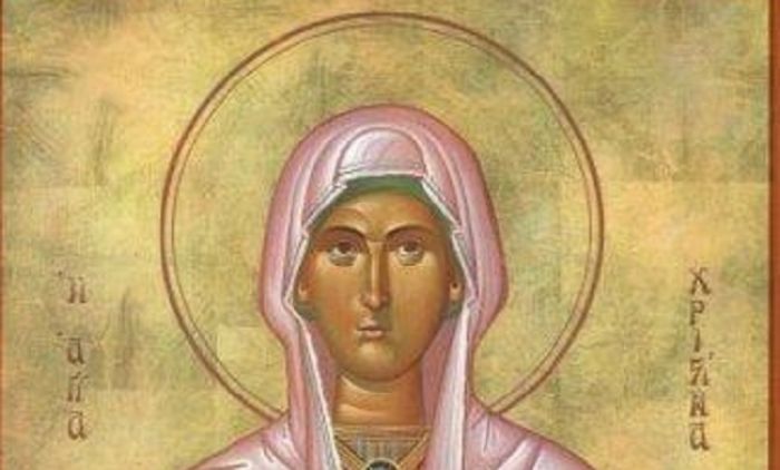 Мученица Христина била је ћерка идолопоклоника који ју је предао на тешке муке јер је полупала све идоле. Прво су јој одсекли груди и језик, а потом је убили мачем