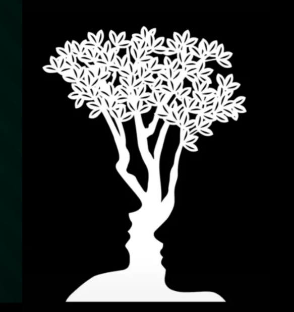 Друга слика приказује дрво оцртано белом бојом и силуете двоје људи који гледају једно у друго у тамнијим негативним просторима.