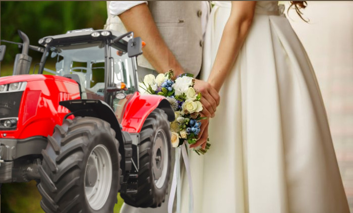 Њен тата је предложио да се трактор Фергусон вредан око 6.000 евра префарба, што је сматрала одличном идејом, а јарко црвена се савршено слагала са њеном белом венчаницом.
