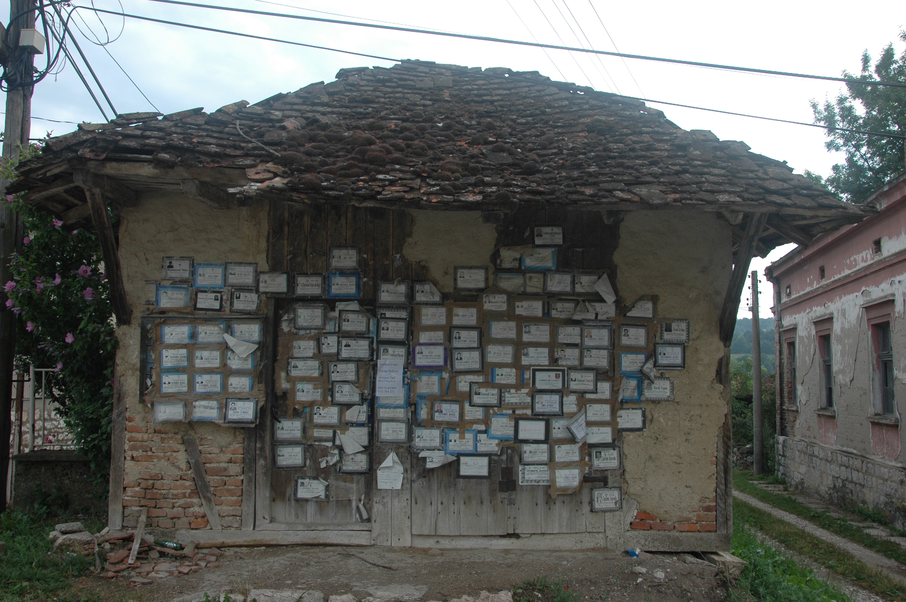 Веома шаљиви, Кривовирци су показали и њихов „фејсбук“. Оригиналан је као и све у овом селу. Фасада једне од некадашњих кућа облепљена је бројним умрлицама.
