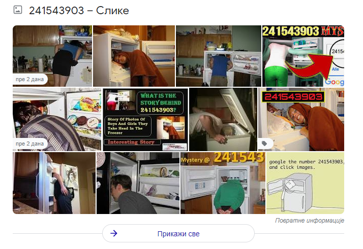 Када у Гуглу укуцате број 241543903 и уђете у слике, приказаће вам се гомила фотографија људи који су гурнули своје главе у фрижидере.