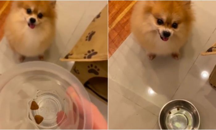 Стрпљиво је чекао да му његова власница да храну, али када је видео да се у чинији налазе само два кескића, његово узбуђење прерасло је у бес.