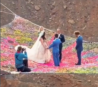 Веровали или не, Џексонов кум је конструисао разнобојну свемирску мрежу 120 метара изнад земље, где се срећни пар венчао.
