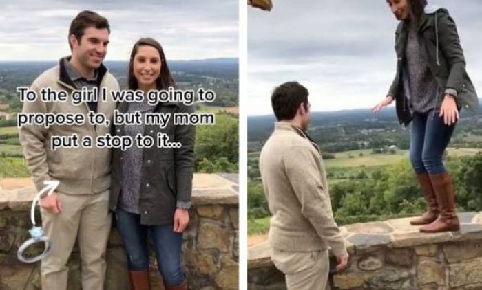 Један човек успео је да ухвати тренутак док је дечко се припремао да запроси своју тадашњу девојку, када је његова мама ушла и буквално му рекла не.