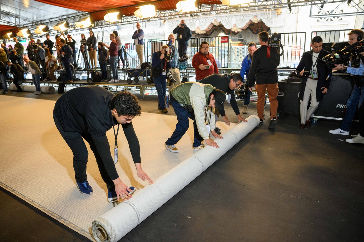 Завршни радови на постављању сценографије су у току, да све изгледа перфектно када највеће звезде Холивуда пристигну на тепих боје шампањца.