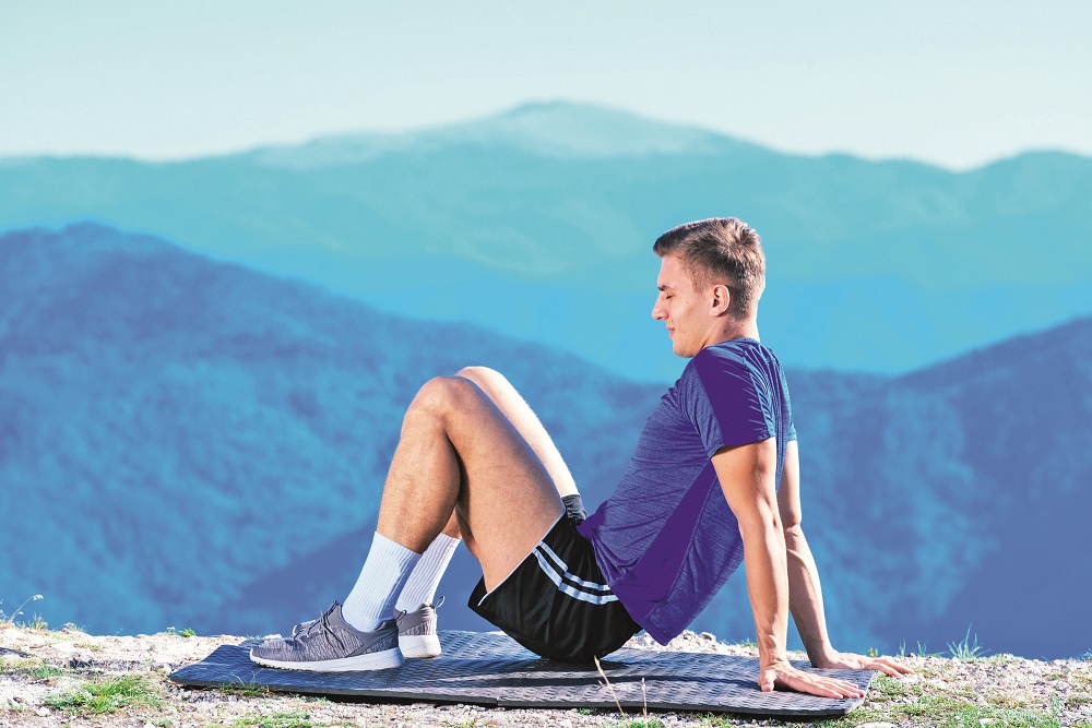 Лезите на леђа и ставите руке на потиљак. Ноге савијте у коленима, Подижите лопатице и груди, док доњи део леђа мора да остане приљубљен за подлогу. Пре подизања удахните, а док се подижете издишите. Урадите 30 трбушњака, али почните са 10.