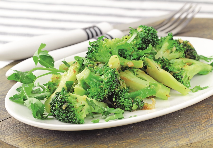 Вечера: барени броколи зачињен маслиновим уљем и белим луком, парче немасног сира и парче хлеба