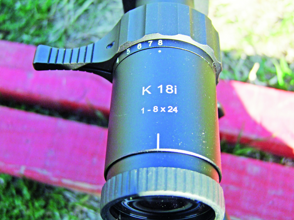 К18и је у другом фокалном плану, са ниским туретима и елевацијом од 1цм/1клик/100м. Велики зум фактор од 8x па све до реалног увећања 1x, пружа стрелцу идеалну комбинацију за гађање на различитим растојањима, заједно са две потпуно нове кончанице развијене за спортска такмичења.