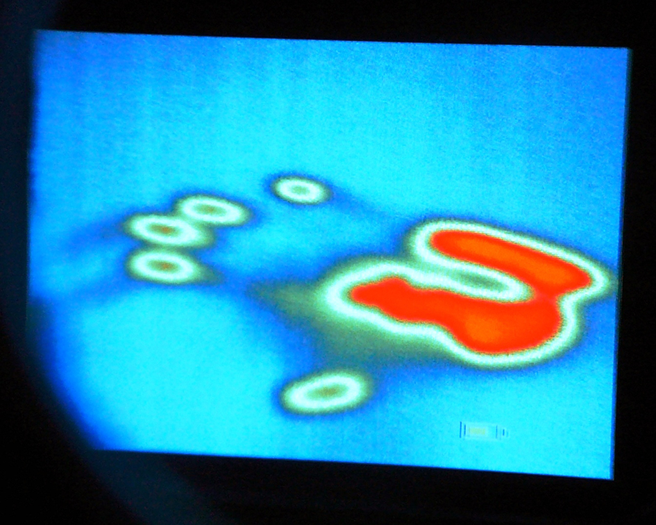 Термална слика отиска длана на дрвеној површини, када је ОТС-30 подешен на „средње високу осетљивост“, фото: Драган Шапоњић