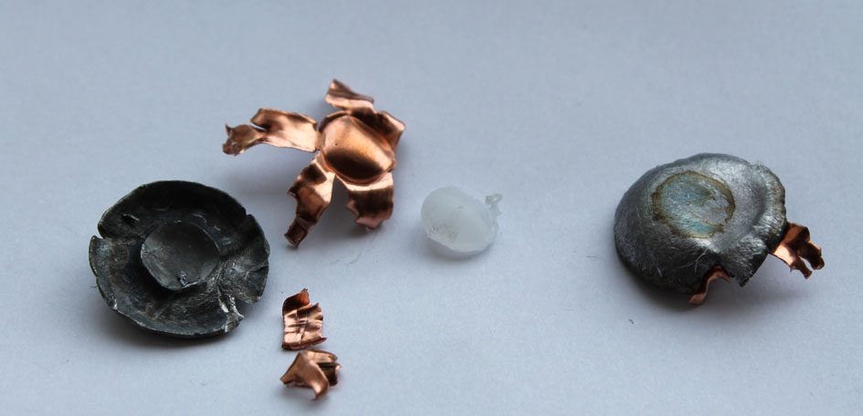 Извађена ЈХП зрна после испаљивања у свежњеве мокре хартије, фото: Милан Милановић
