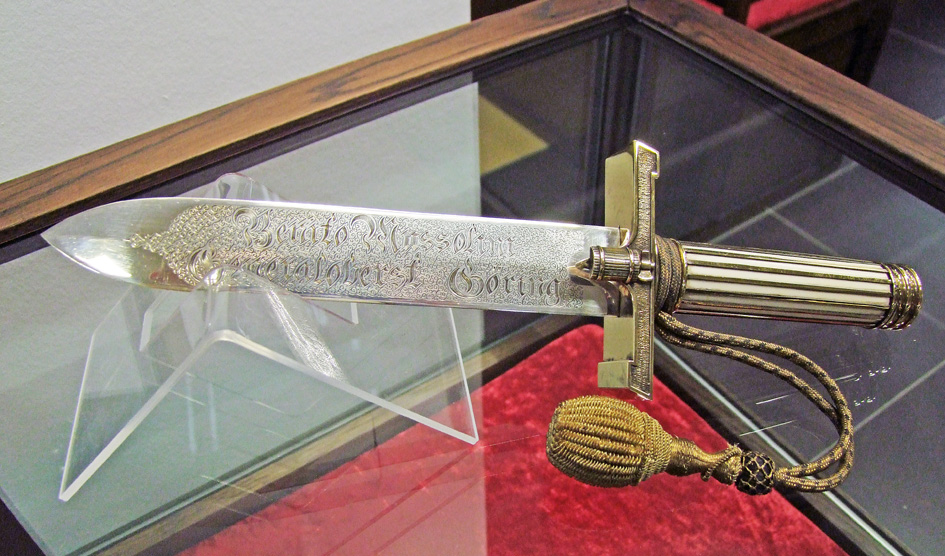 Протеклог месеца указала ми се прилика да присуствујем изложби на којој је представљен почасни бодеж који је лидер фашистичке Италије, Дуче Бенито Мусолини поклонио врховном команданту немачких ваздушних снага и министру авијације Херману Герингу и том приликом га именовао за генерала фашистичке милиције МВСН (Милизиа Волонтариа пер Ла Сицурезза Назионале).