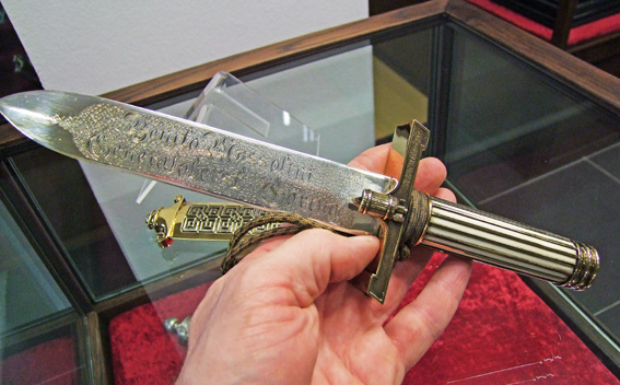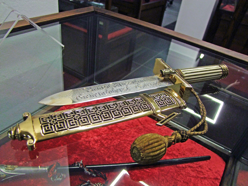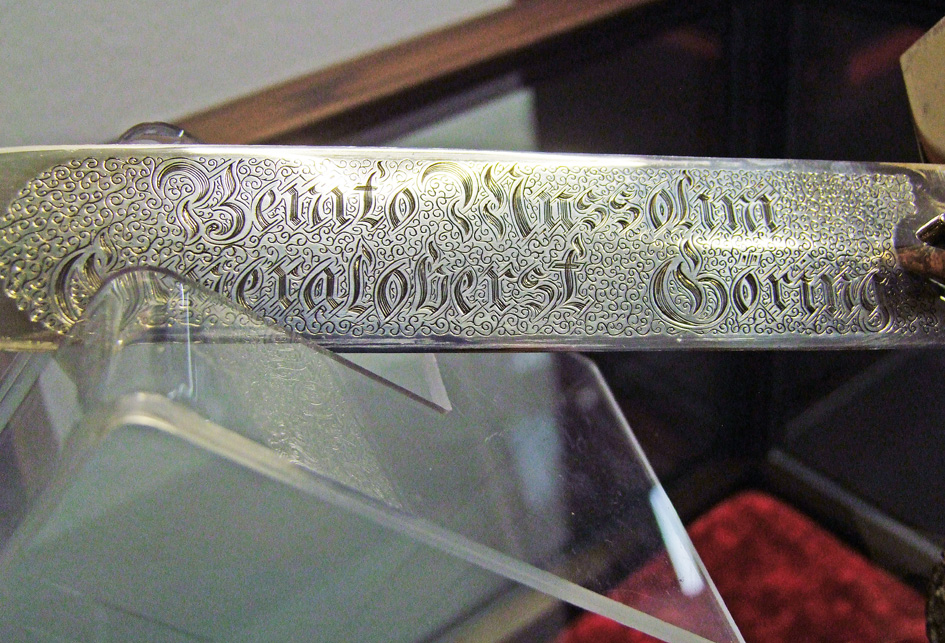Флорална гравура на сечиву и натпис: "Бенито Муссолини - Генералоберст Геринг", фото: Љубиша Момчиловић
