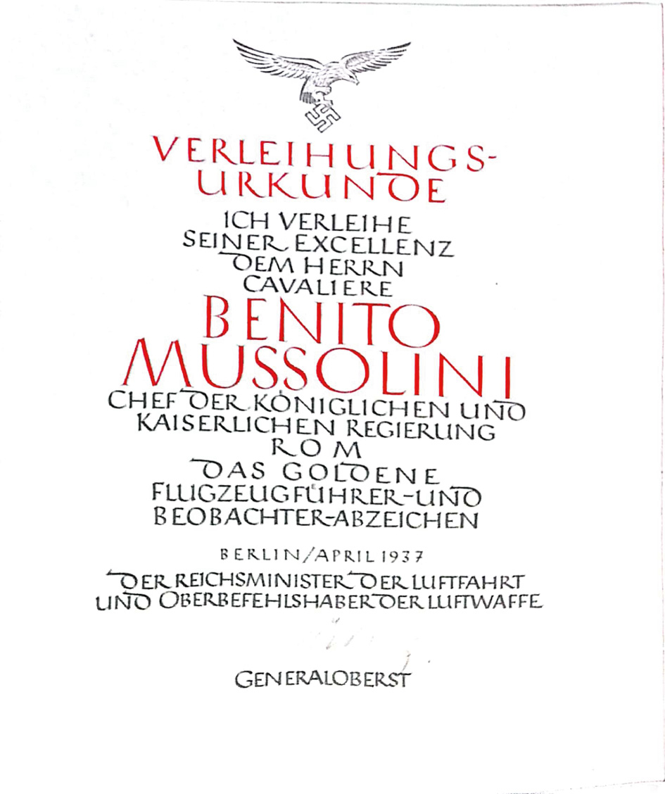 Геринг је Мусолинија одликовао немачким Пилотско-извиђачким орденом са дијамантима, фото: Љубиша Момчиловић