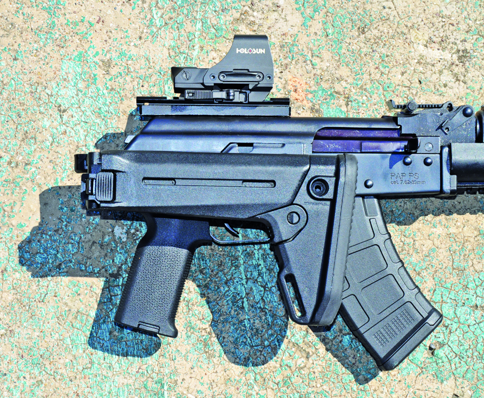 Југословенска фамилија аутоматских пушака М70 (АК платформа) изнедрила је и “Заставину” спортско/ловачку верзију ПАП ПС калибра 7,62x39 мм. Код овог модел кундак је пластични са бочним отвором за палац, врло лошег квалитета и геометрије, прегломазан, са врло високом образином, тако да када се пуца из стојећег става да би се опште видео задњи нишан, глава се мора померите на сам врат кундака.
