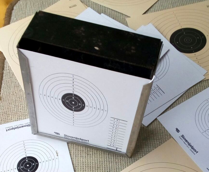 Специјалне кутије за “хватање” дијабола можете да купите у већини ловачких продавница, а лако их је направити у “домаћој радиности”. Купите само оригиналне мете и према њиховим димензијама направите лимену кутију са каналима од савијеног лима у које улази мета. Између мета и лима можете да поставите сунђер или пресавијену тканину, па тако испаљену, а недеформисану дијаболу можете да користите више пута. Уједно ово знатно умањује рески звук ударца метка у лим носача мете.