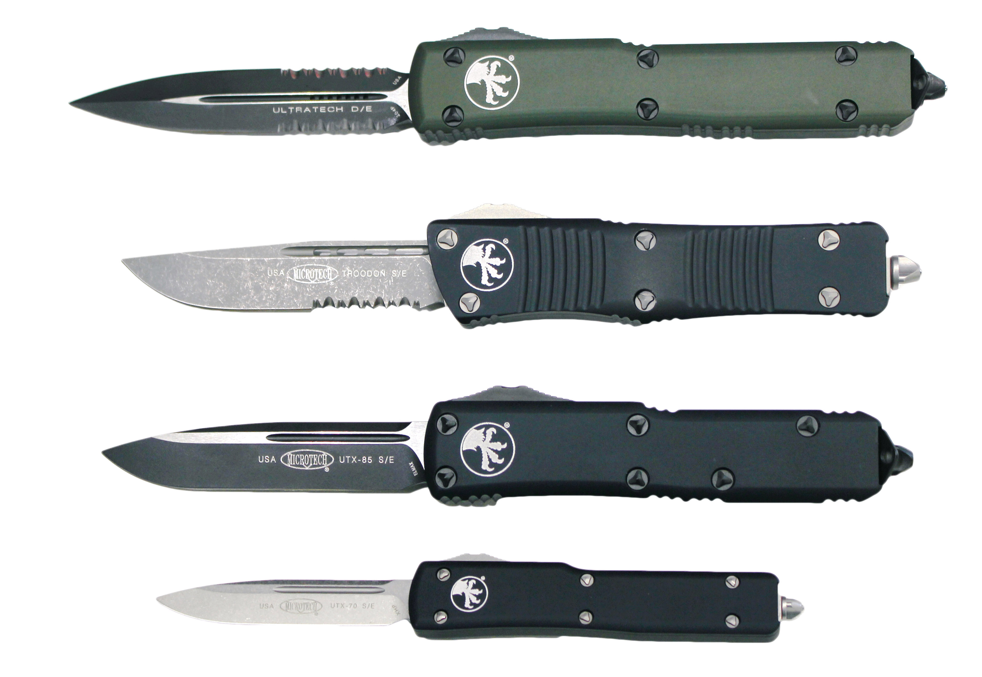 Ипак, “Мицротецх” је славу стекао својим ОТФ (Оут Тхе Фронт) аутоматским ножевима, код којих сечиво на притисак дугмета излеће право унапред, кроз прорез на дршци која је уједно и кућиште прецизног механизма. Прецизност је кључна одлика, јер се то директно одражава на љуљање (тзв. бладе плаy) сечива у отвореном положају. А “Мицротецх” се дичи својим “зеро бладе плаy” моделима.
