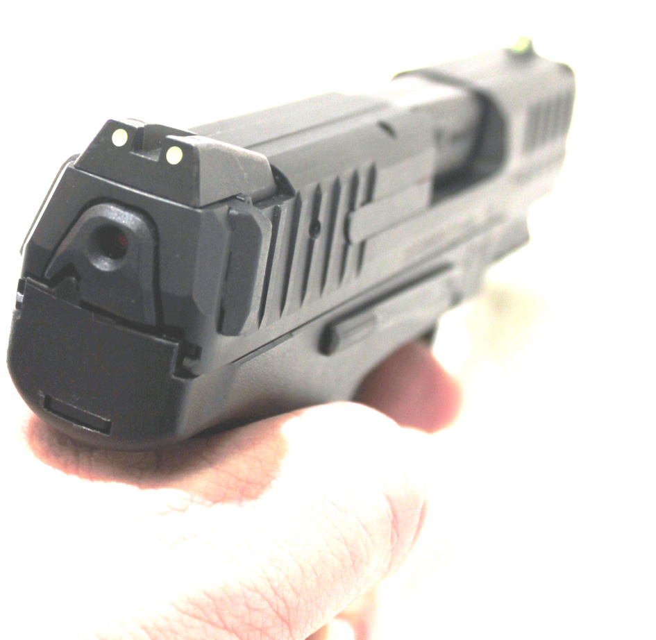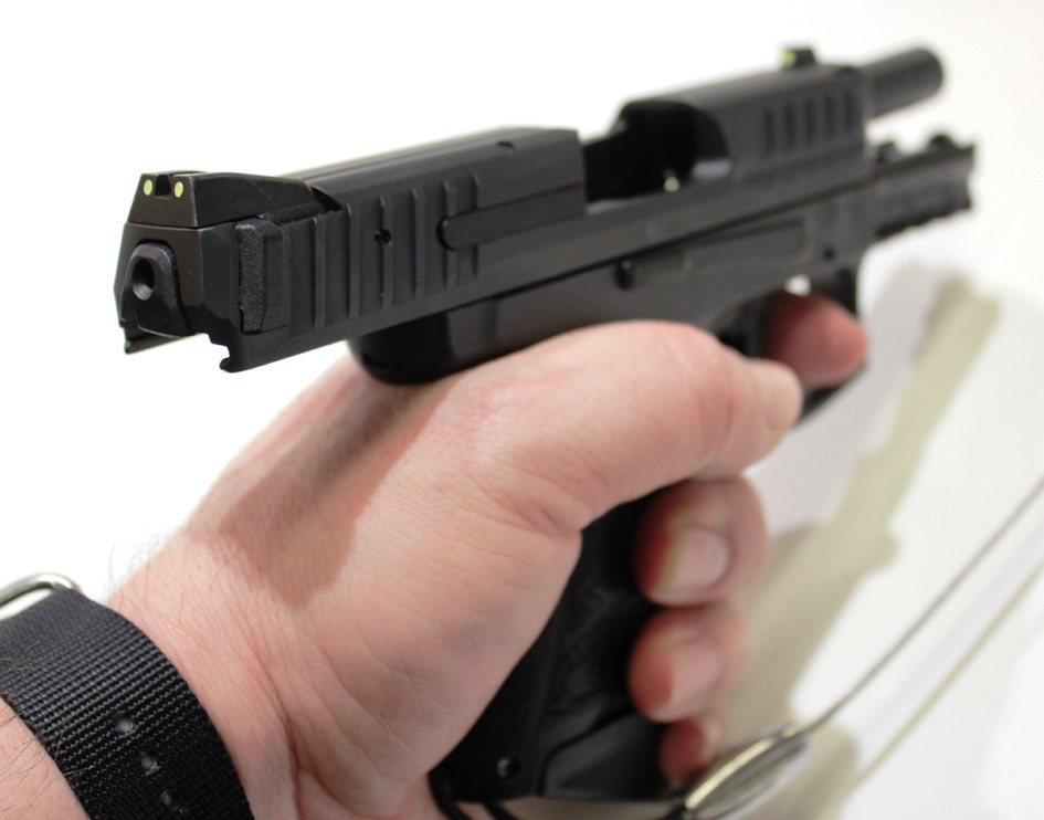 Наводно, разлог за то је врста полимера који Хецклер користи и који је осетљивији на еластичне деформације тј. лакше долази до замора материјала. Засада су у понуди три боје полимера - црна, зелена и браон. У предњем доњем делу, испод цеви налази се кратка Пикатини монтажна шина са три уреза по МилСтд 1913. Избор различитих светиљки и ласерских обележивача је прилично велики, па је лако наћи одговарајући део опреме за рад у лошим светлосним условима. У корену штитника окидача смештена је команда за ослобађање оквира. Оберндорфу су одлучили да корисницима понуде као опцију и класично дугме са леве стране рама. У рукама сам имао управо такав модел и мада немам примедаба ни на старо решење ова класична команда ради без мане.