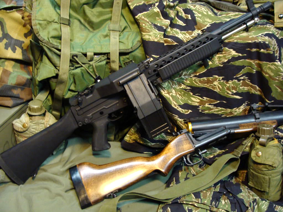 Американци су на почетку Вијетнамског рата користили пушку М-14, за коју се слободно може рећи да је унапређена пушка Гаранд М-1 из Другог светског рата. Проблем са М-14 је у томе што Вијетнам није ни приближно личио на европско ратиште. Међутим, убрзо је, прво преко ратног ваздухопловства, а затим и других видова америчких ОС, у наоружање ушла чувена пушка М-16, односно њене варијанте А1 и XМ 177 Е1 и Е2.