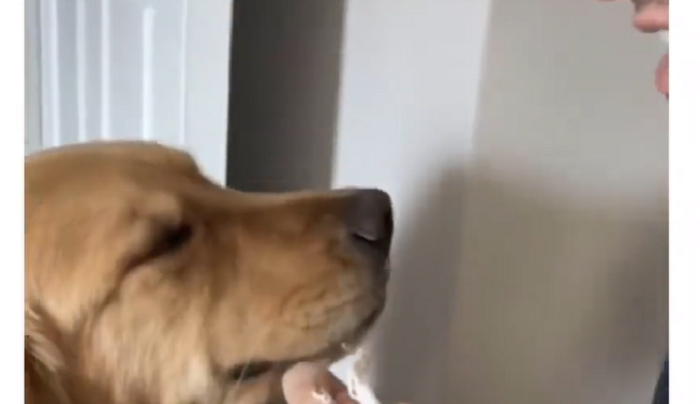 Наиме, он је изгризао кабл, а власник га је љутито гледао држећи у руке изгризене остатке. Међутим, пас је стао на две ноге и загрлио га, а потом кренуо да га љуби. После оваквог потеза, нико не би могао да остане љут на овог преслатког златног ретривера.