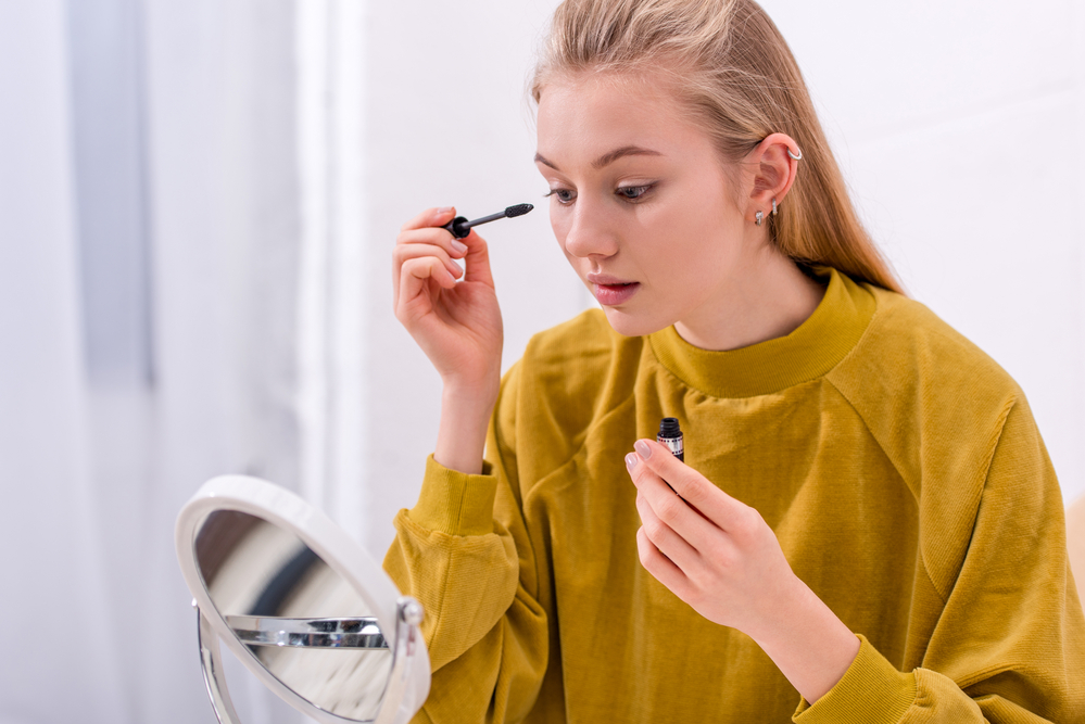 Уместо да гледате право у огледало или на горе и тако мажете маскару са унутрашње стране трепавица, гледајте на доле и наносите маскару од корена ка врха трепавица на овај начин. Олакшајте себи тако што ћете огледало ставити у ниво испод браде, дакле на сто испред себе.