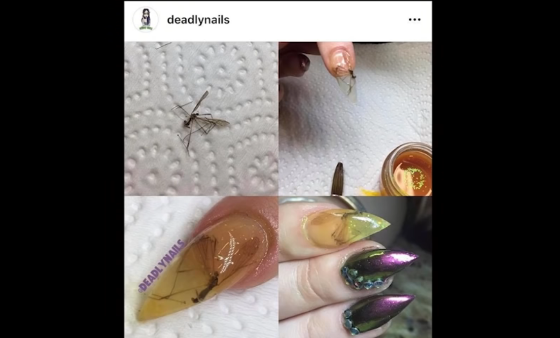 На шљокице, најразличитије боје, нијансе и облике различитих геометријских тела на ноктима дама одавно смо навикли. Међутим, Никол Касати, девојка из Мелбурна, сетила се да оде корак даље и да као своју препознатљиву и бизарну технику за мазање ноктију употреби инсекте, и то мртве!