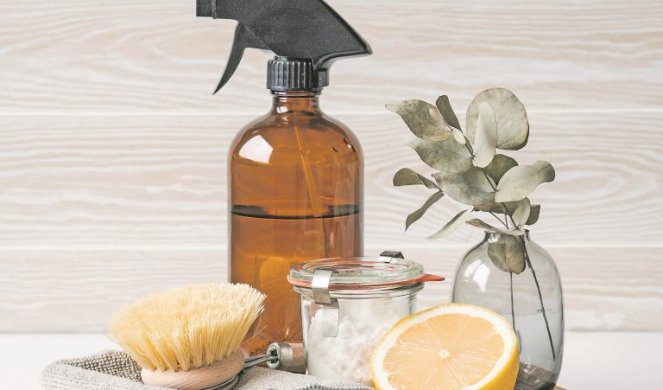 За један литар воде потребно је 6 кашика соде бикарбоне и пар десетина капи цитрусног уља - грејпфрута, поморанџе, мандарине, лимуна. Навлажите сунђер и обришите плочице и плочице. Нема потребе за испирањем.