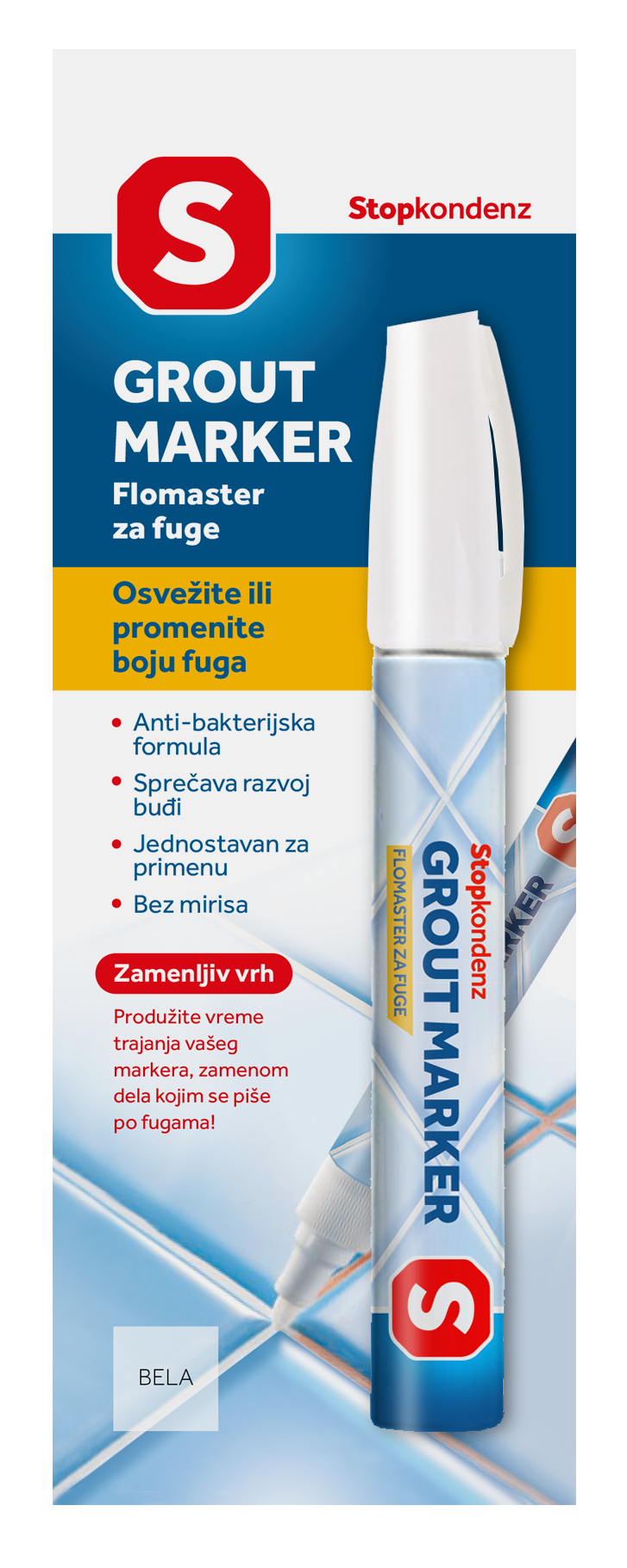 Нема потребе да се трудите покушавајући да избелите старе, прљаве фуге. Фломастер за фуге је најбржи и најјефтинији начин да промените или освежите њихову боју. Покривна моћ овог фломастера је 53 дужна метра фуге просечне ширине. Он прекрива све мрље, брзо се суши и има антибактеријску формулу против буђи. Уједно, то је и најефикасније решење уколико желите да промените боју фуге, а доступан је у белој, беж и сивој боји.