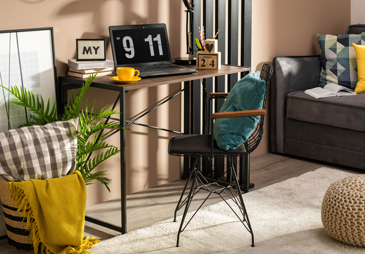 Радни кутак у оквиру дневног боравка можете преградити малим параваном, али тако да боја зида простор повезује у целину. Бирајте намештај који припада индустријском дизајну и комбинација је дрво декора и метала. Сјајан пример је компјутер сто ЦТ- 1932, уз који можете комбиновати модерно дизајнирану трпезаријску столицу ВРП-001-К.