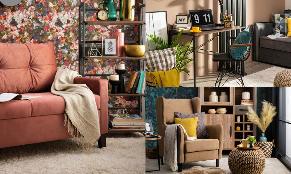 Земљани тонови не морају стриктно да буду заступљени кроз комаде намештаја. Могу бити део ентеријера кроз боје зидова, тепиха или декорације, док намештај може бити у било којој боји и стилу.