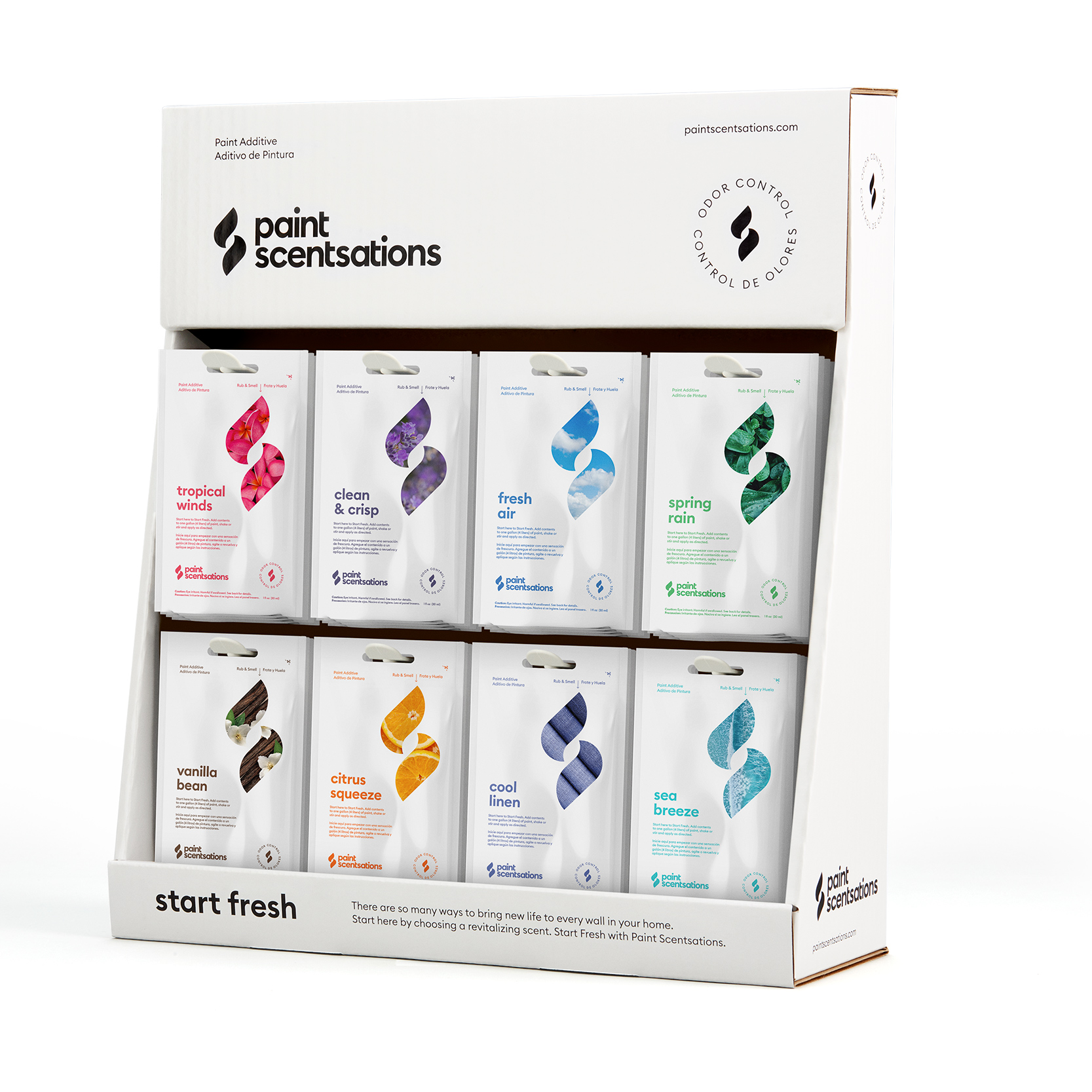 Паинт СЦЕНТСсатионс је додатак боји за контролу мириса. Може се користити са било којом латекс бојом или бојом на бази разређивача и нец́е утицати на боју, квалитет или наношење боје. Када се дода у боју, резултат је дуготрајни освеживач ваздуха који помаже у уклањању непријатних мириса и освежава атмосферу у просторији.