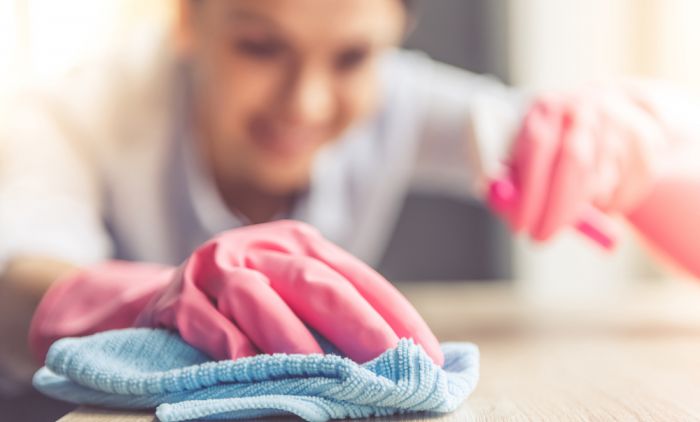 Крпу поквасите и добро обришите подове. Осим подова можете пребрисати и полице, столове, кваке и уређаје које имате у кући.