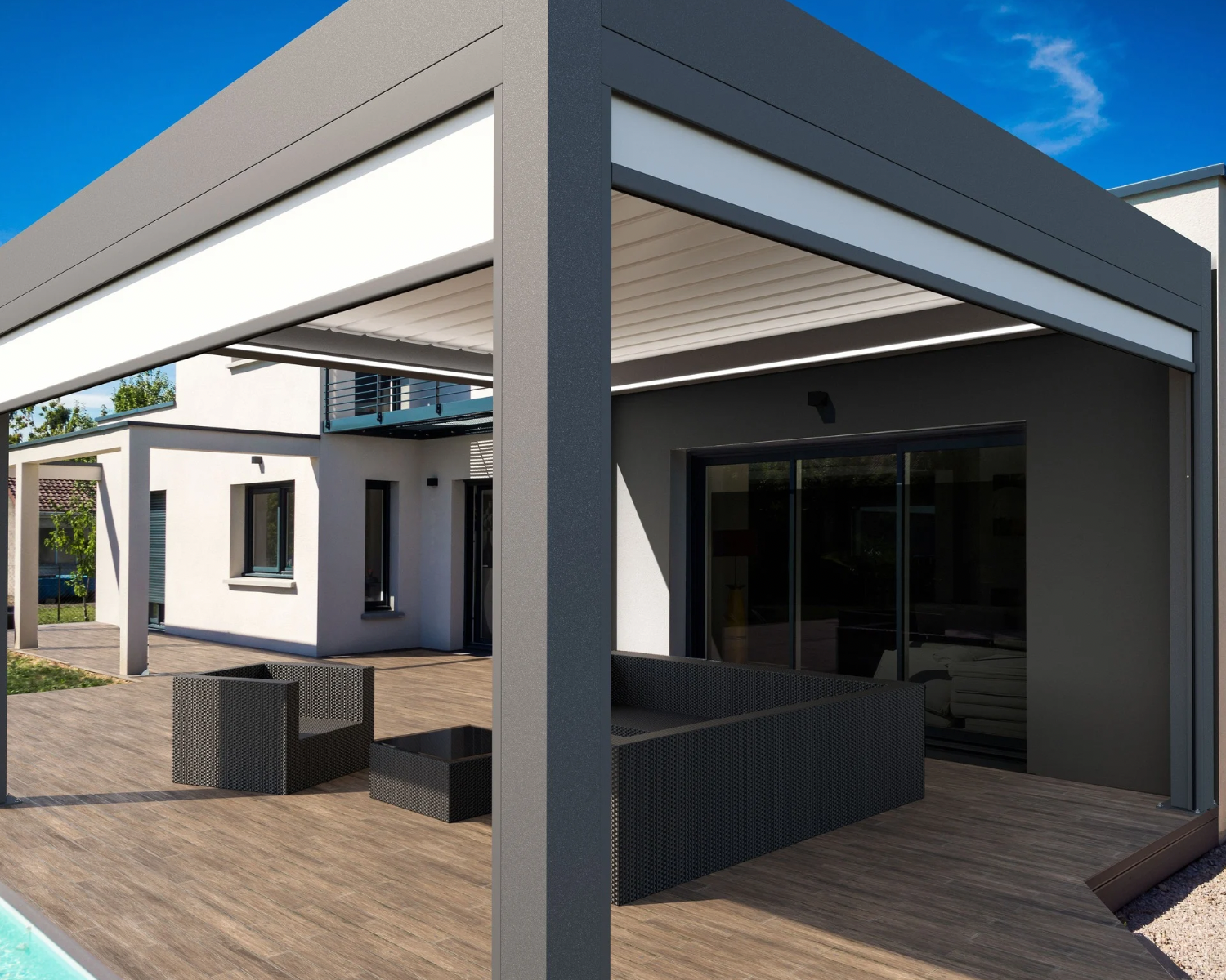 То су конструкције намењене креирању спољног простора за седење који штити од сунца. Постоје најразличитији типови – од оних платнених за прославе и венчања, једноставних дрвених намењених само за сунчање поред базена али и озбиљних конструкција од алуминијума које пружају могућност кориснику да креира додатних простор за уживање, у оквиру којег има може подешавати климу сходно својим потребама. Ми смо се фокусирали на трећу категорију, и решили да вам представимо све предности ових система.