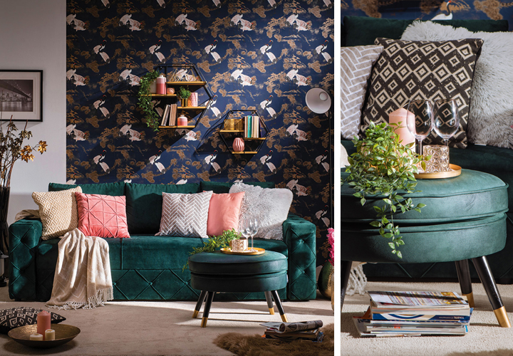 За савремене модерне амбијенте одличан избор је табуре БРИЖ у тамнозеленом штофу, који је идеална комбинација са фотељом БРИЖ у истом дезену. У овакав амбијент дневног боравка сјајно би се уклопио лежај БОЈАНА, који је веома практичан, а доприноси и естетици простора.