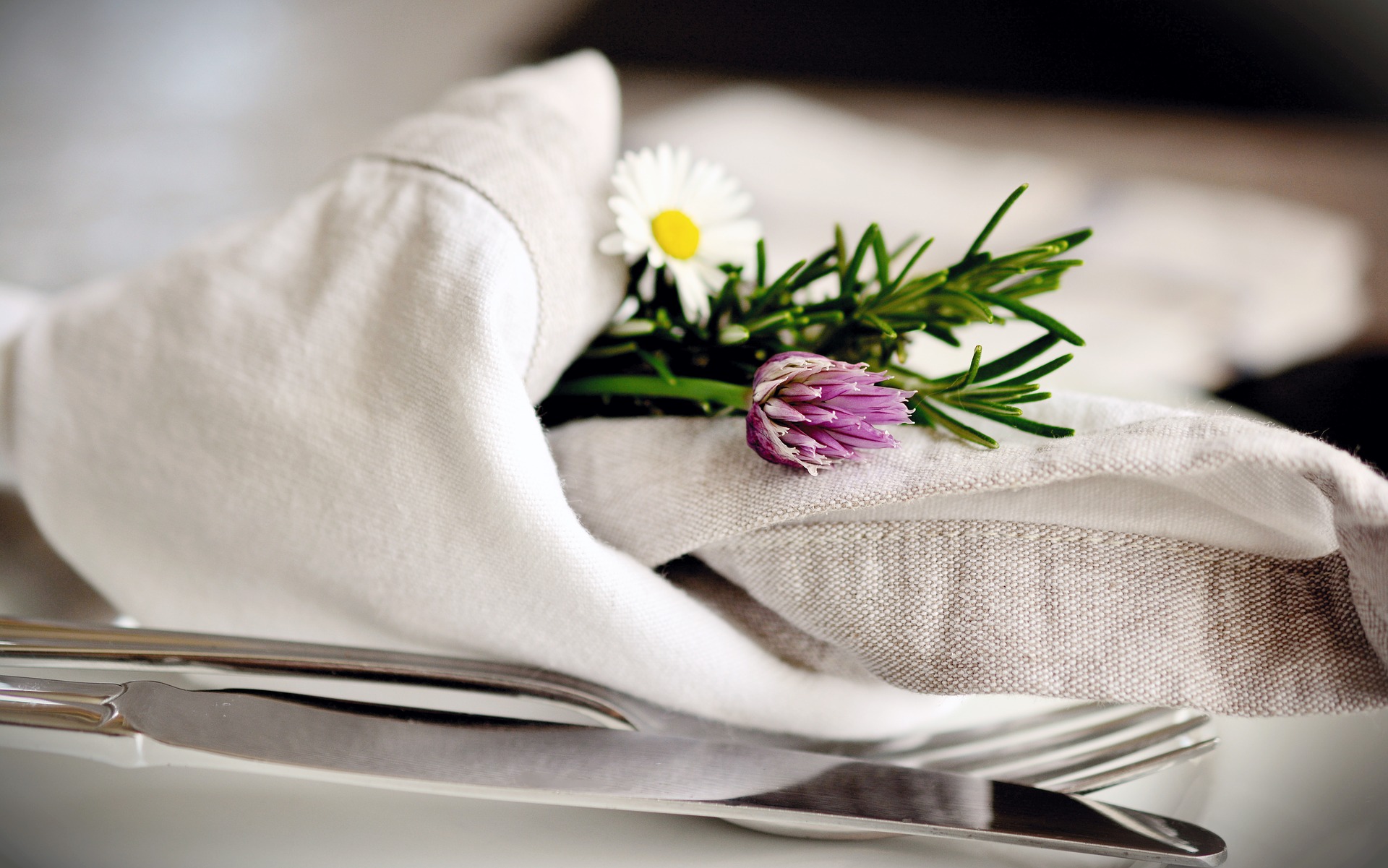 - Када причврстите све снопове укруг, провуците салвету кроз прсте и декорација је готова